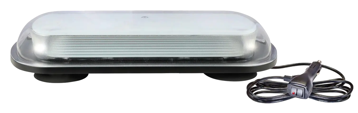 LED Light Bar SAE Class I – 17” with clear dome and 72 amber LED’s. Vacuum mount that includes cigarette cord with switched plug. Size: 17.1”L x 8.5”D x 2.9”H